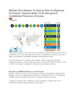 biahe ta pa recupera e credibilidad financiero internacional di Aruba.