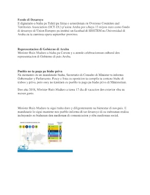 Territories Association (OCT-EU) p’asina Aruba por a haya 13 miyon euro como fondo