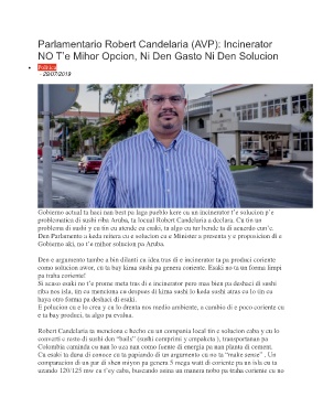 Gobierno actual ta haci nan best pa laga pueblo kere cu un incinerator t’e solucion p’e