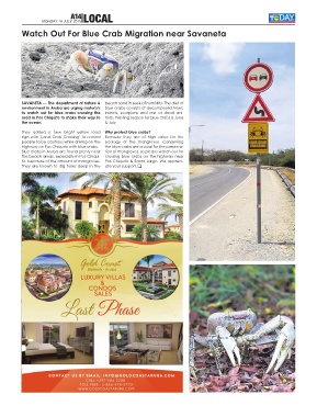 the beach areas, especially in Pos Chiqui- crossing blue crabs on the highway near
