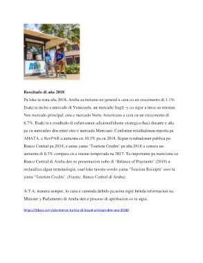 Pa loke ta trata aña 2018, Aruba su turismo en general a cera cu un crecemento di 1.1%.
