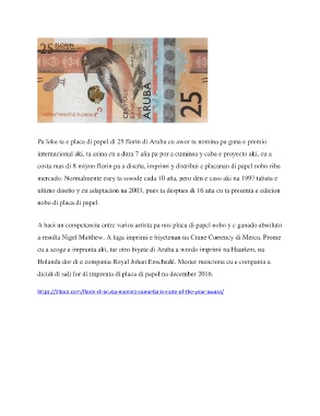 Pa loke ta e placa di papel di 25 florin di Aruba cu awor ta nomina pa gana e premio