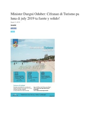 Minister Dangui Oduber: Cifranan di Turismo pa luna di july 2019 ta fuerte y solido! August 14, 2019 SHARE Facebook Twitter