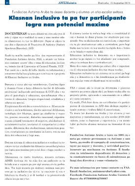 Fundacion Autismo Aruba, FAA, a atende un �inten�, FAA, a atende un �inten� mester ta pa sigura cu tur studiante por compronde,