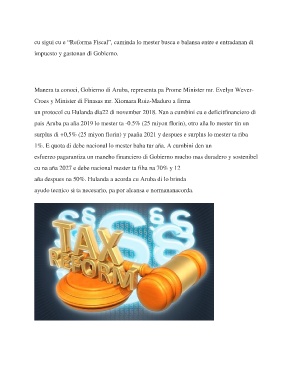 pais Aruba pa aña 2019 lo mester ta -0.5% (25 miyon florin), otro aña lo mester tin un