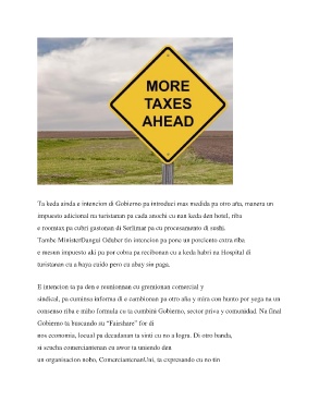 impuesto adicional na turistanan pa cada anochi cu nan keda den hotel, riba