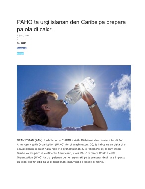Organization (WHO) ta urgi paisnan den e region aki pa ta prepara, debi na e impacto