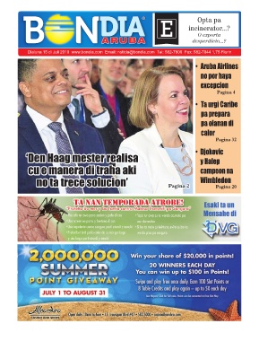 Dialuna 15 di Juli 2019 www.bondia.com Email: noticia@bondia.com Tel: 582-7800 Fax: 582-7044 1,75 Florin