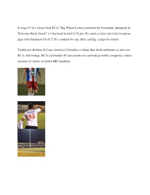 Welcome Back Snack” vs Nacional ta start 8:30 pm. Pa esnan cu kier nan ticket tempran