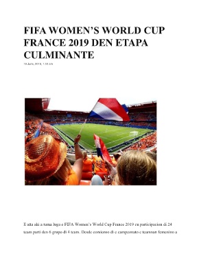 FIFA WOMEN’S WORLD CUP FRANCE 2019 DEN ETAPA CULMINANTE 19 June, 2019, 1:10 am E aña aki a tuma luga e FIFA Women’s World Cup France 2019 cu participacion di 24 team parti den 6 grupo di 4 team. Desde comienso di e campeonato e teamnan femenino a
