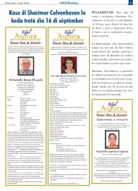 Acto di condolencia lo tumalugarna Royal Funeral Home diahuebs4 di juli Enbes di krans, lo tin un box disponibel pa Edmund Harms 6 pm, na Kapel di Alto Vista diamars 9 di juli pa 5.30 pm.