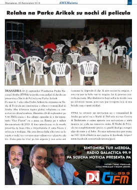 DIASABRA 28 di september Fundacion Parke Na- humano ta depende di dje. E aire cu nos ta respira, e
