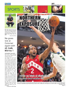 Colonial in his top three Conference basketball playoff finals Thursday, May 23, 2019, in Milwaukee. The Raptors won 105-99 to take a 3-2 lead in the series.