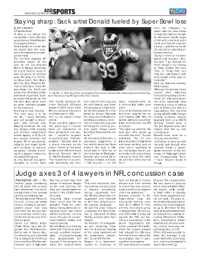can evaluate retired play- will be protected as they nial of repeated motions one of the first to bring suit to football concussions, in-