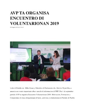 partido AVP ta organisa Encuentro Voluntarionan 2019. Motivacion, Formacion y