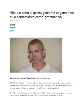 ORANJESTAD (AAN) — Francis Saladin, Director di Frasa Trading, den conferencia di