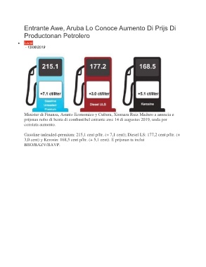 prijsnan nobo di benta di combustibel entrante awe 14 di augustus 2019, unda por