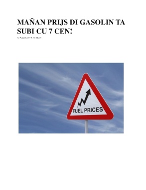 MAÑAN PRIJS DI GASOLIN TA SUBI CU 7 CEN! 13 August, 2019, 12:08 pm