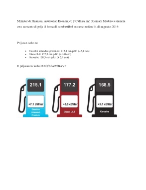 awe aumento di prijs di benta di combustibel entrante mañan 14 di augustus 2019.
