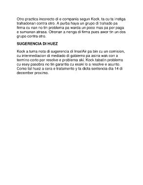 Otro practica incorecto di e compania segun Kock, ta cu ta instiga