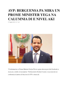 “E informacion cu Prome Minister Evelyn Wever a pone den un post riba Facebook ta