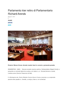 Premier Wever-Croes: Arends mester haci lo corecto y presenta prueba