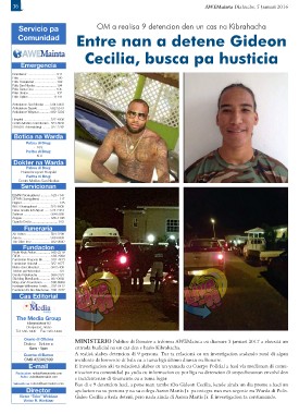 The Media Group MINISTERIO Publico di Bonaire a informa AWEMainta cu diamars 3 januari 2017 a ehecutá un