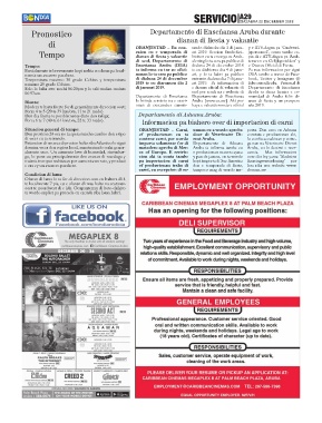 Parcialmente te brevemente hopi nubia cu chens pa local- ta informa cu tur su ofici- te cu diabierna dia 4 di janu- Pa mas informacion por sigui