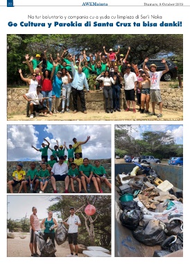 22 AWEMainta Diamars, 8 October 2019 Na tur boluntario y compania cu a yuda cu limpieza di Ser’i Noka Go Cultura y Parokia di Santa Cruz ta bisa danki!