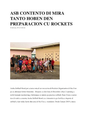 Aruba Softball Bond por a tuma nota di un movecion di Rockets Organisation di Sta Cruz