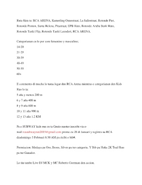mail rcasubwayrun2019@gmail.com prome cu 28 di Januari y registra na RCA