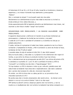 Aruba aparentemente NO ta bastante atractivo pa bishitantenan mas hoben, net