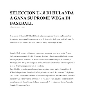 E seleccion di Baseball U-18 di Hulanda a bay cu su prome victoria, cual ta uno hopi