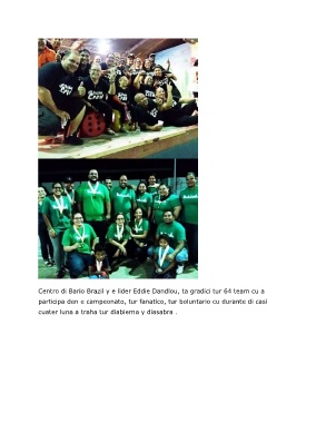 Centro di Bario Brazil y e lider Eddie Dandlou, ta gradici tur 64 team cu a participa den e campeonato, tur fanatico, tur boluntario cu durante di casi cuater luna a traha tur diabierna y diasabra .