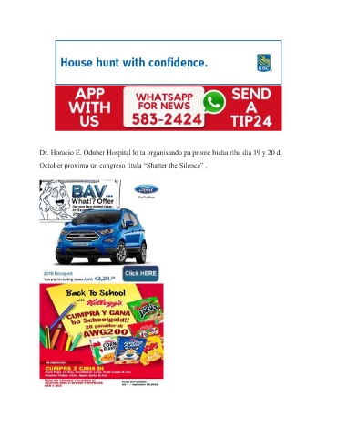 Dr. Horacio E. Oduber Hospital lo ta organisando pa prome biaha riba dia 19 y 20 di October proximo un congreso titula “Shatter the Silence” .