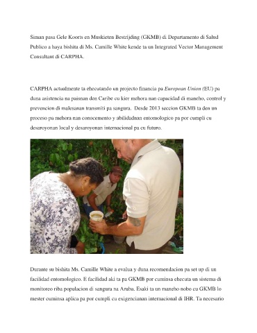 Publico a haya bishita di Ms. Camille White kende ta un Integrated Vector Management