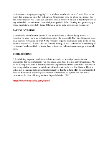 hiba e mandatario corte bek. Segun Oduber, e siman aki e sentencia ey mester cay.
