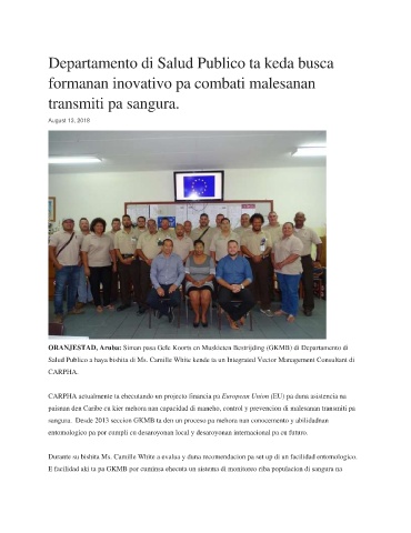 Salud Publico a haya bishita di Ms. Camille White kende ta un Integrated Vector Management Consultant di
