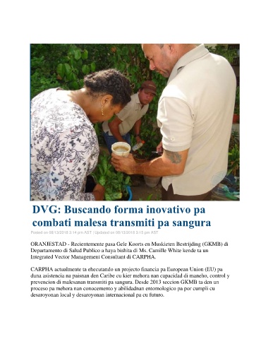 ORANJESTAD - Recientemente pasa Gele Koorts en Muskieten Bestrijding (GKMB) di
