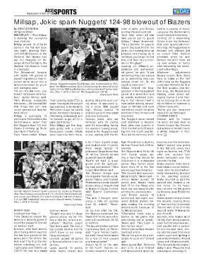 day night in Portland. first-quarter points, Nikola shooters the Nuggets send ing into the fourth quarter. a similar letdown in Port-