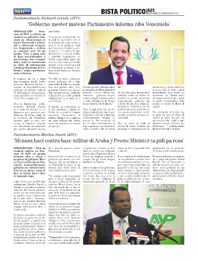 dignacion pa e posicion am- Aruba no ta parti di ningun forma parlamento mas regu- cu esey ta ocasiona tur nervi- No solamente di hende nos