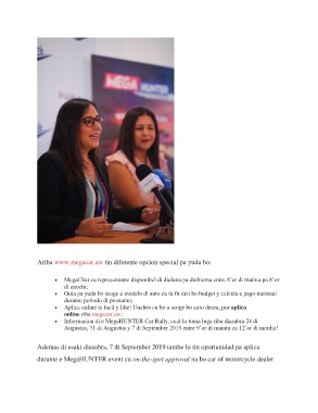 Informacion di e MegaHUNTER Car Rally, cual lo tuma luga riba diasabra 24 di