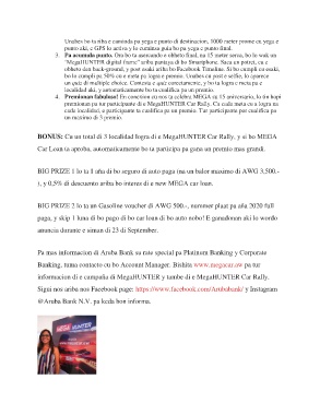 informacion di e campaña di MegaHUNTER y tambe di e MegaHUNTER Car Rally.