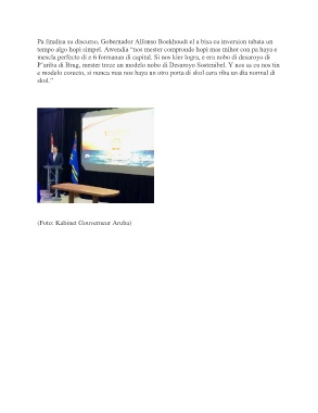 Pa finalisa su discurso, Gobernador Alfonso Boekhoudt el a bisa cu inversion tabata un