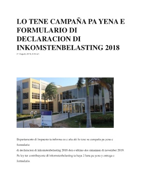 Departamento di Impuesto ta informa cu e aña aki lo tene su campaña pa yena e