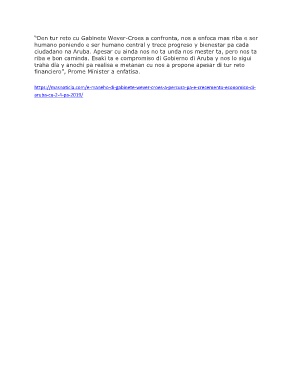riba e bon caminda. Esaki ta e compromiso di Gobierno di Aruba y nos lo sigui