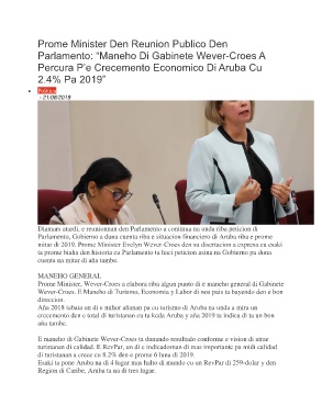 mitar di 2019. Prome Minister Evelyn Wever-Croes den su disertacion a expresa cu esaki