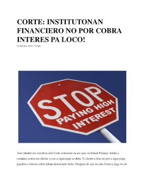 pasobra e interes cobra tabata demasiado halto. Despues di casi un aña Corte a yega na un