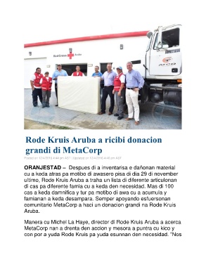 comunitario MetaCorp a haci un donacion grandi na Rode Kruis