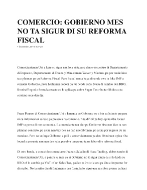 ni cu informacion alcaso pa presenta na comercio. E ta dificil pa bay opina riba locual